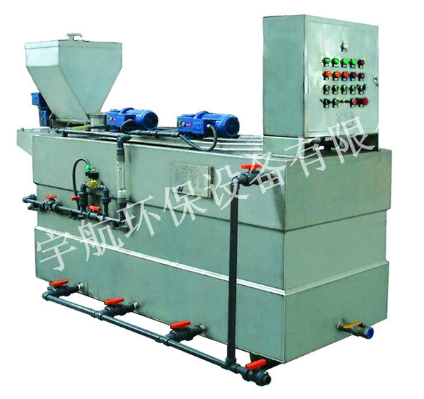 本設(shè)備可滿足固體和液體絮凝劑的自動制備,主要由:三腔藥箱,自動吸料機(jī)、自動投粉機(jī)、自動配水系統(tǒng)、出藥系統(tǒng),就地電氣控制系統(tǒng)等組成。