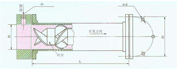 A、混合器管徑按經濟流速進行選擇,一般按0.9-1.2米/秒計算;管徑大于500毫米的最大流速可達1.5米/秒  計算。有條件時。將管徑放大50-100毫米,以便減少水頭損失。